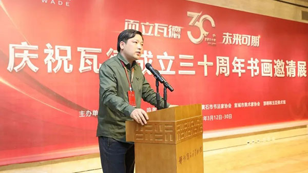 陽光集團(tuán)董事長韓玉臣作了熱情洋溢的致辭,他對瓦德集團(tuán)成立30年慶典表示熱烈地祝賀,對董事長謝富強(qiáng)自身藝術(shù)修養(yǎng)及瓦德企業(yè)的文化品位給予了很高的評價,對瓦德集團(tuán)能傾力傾情舉辦如此規(guī)模的書畫大展,開創(chuàng)了邯鄲書畫界先河的行舉表示贊嘆。
