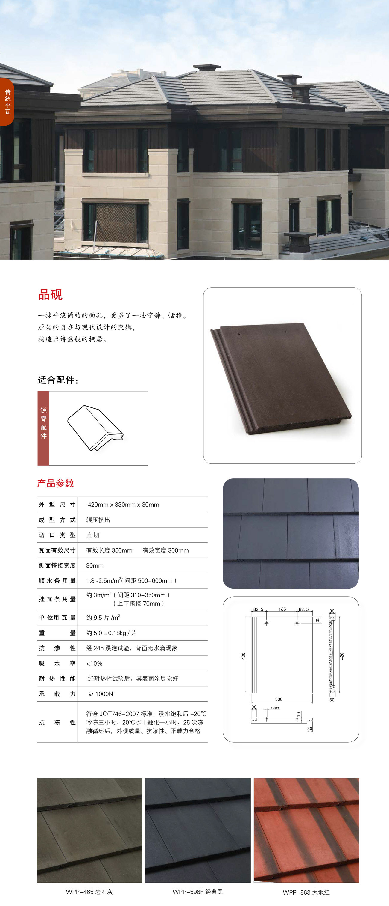 當前位置:網(wǎng)站首頁>>產(chǎn)品介紹>>瓦德彩色混凝土瓦>>瓦硯系列平瓦