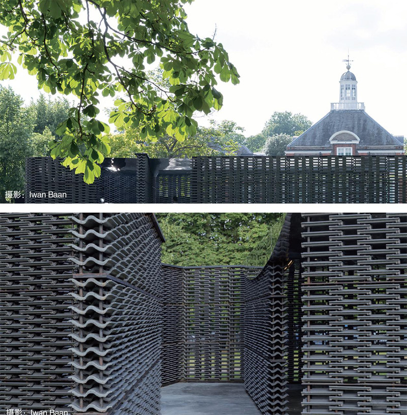 這次她用水泥瓦設(shè)計的展亭,以兩個長方形體量組合成庭院空間,通過運(yùn)用光與水的元素,營造出墨西哥民居的感覺,同時也和倫敦的文化環(huán)境產(chǎn)生聯(lián)系。
